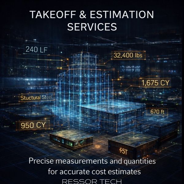 Ressor Tech provides accurate, data-driven takeoff and estimation services for all construction trades, supporting early budgeting, bid preparation, and project planning. Our takeoffs are built from coordinated drawings, BIM models, and verified data — not assumptions — giving teams confidence in quantities and costs before construction begins.